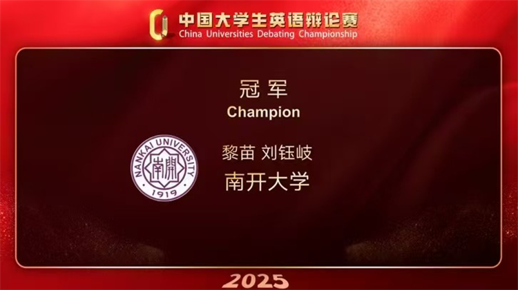 11月29日,2025年中国大学生英语辩论赛(CUDC)圆满收官。经过激烈角逐,南开大学外国语学院研究生黎苗、...