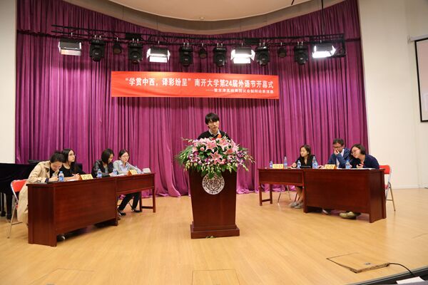 3月18日,主题为“学贯中西·译彩纷呈”的南开大学第二十四届外语节在东方艺术大楼开幕。来自北京大学、外交学院、天津外国语大学、天津师范大学、南开大学等京津高校的二百余学生参加。