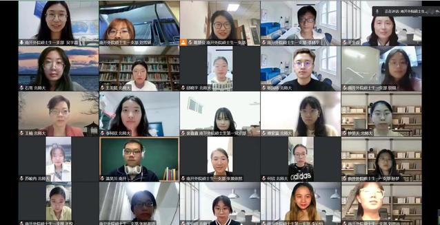 10月23日晚上,作为新时代外语学子,为探讨如何结合专业所学深入学习贯彻落实党的二十大精神,外国语学院硕士生第一党支部与北京师范大学外国语言文学学院本科生第二党支部联合开展主题为“新时代外语人的责任与担当”党建交流沙龙。 活动伊始,由北京师范大学外国语言文学学院副院长、博士生导师、外文学院本科生第二党支部理论导师王楠和南开大学外国语学院兼职组织员、英语教师党支部书记王冬焱,就党的二十大精神进行了交流分享,加深了与会党员对二十大报告中要点的理解。 随后,两支部学生党员就习近平总书记对青年一代的殷殷嘱托和视察两所高校时的重要讲话精神为核心,对外语人如何学习党的二十大精神展开了热烈讨论。本次云端交流沙龙活动正逢党的二十大召开,不仅促进了两校党支部的联系,而且进一步深化了新时代外语人的责任与担当,提升了支部党员党性修养。 今后,外国语学院研究生党支部将进一步学习贯彻宣传好党的二十大精神,推动党的二十大精神进班级、进课堂,把党的二十大精神与学生党员思想政治教育相结合,引导大家在学思践悟中走好新的赶考之路,交出合格答卷。 |