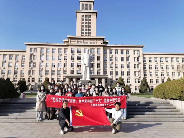 南开新闻网讯(通讯员 李林宇 周文钰)青春正逢时,奋进正当时。在中国共产党第二十次全国代表大会胜利闭幕之际,全国党建工作样板支部、外国语学院硕士生第一党支部用实际行动践行党的二十大精神,以“青春献礼二十大,砥砺奋进新征程”为主题,通过校园定向越野爱国主义教育红色景点、与北京师范大学外国语言文学学院本科生第二党支部联合共建、“云支教”甘肃庄浪四中高一学生等系列主题教育活动,展现了新时代外语人的责任与担当。 线下越野:踏校园红色热土,学四史伟大精神 10月16日下午,为庆祝党的二十大胜利召开,外国语学院硕士生第一党支部举办“忆四史学伟大精神,展未来喜迎二十大”主题党日活动暨定向越野活动,活动以生动有趣的答题和校园红色景点打卡形式进行,支部成员们回忆一段段红色历史,展现专业所学。 本次定向越野活动为参赛队伍设置了四条不同的线路,每条线路经过校内多处蕴意悠长的建筑景观,如西南联大纪念碑、思源堂、省身楼、周恩来总理塑像等,四条路线的打卡点遍布校园。新生党员们一边熟悉校园环境,一边依据路线地图的指示,抵达各个打卡点并完成相应打卡任务,获取对应的明信片。所有参赛的同学们与工作人员们以饱满的热情积极投入到活动之中,展现了善于协作、勇于拼搏的青春风采,体现了昂扬向上、不懈进取的精神风貌。 远程授课:英日双语“云支教”庄浪四中高一学生