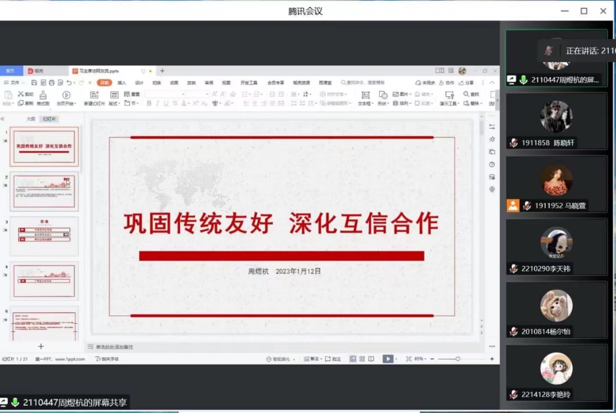 为加深对此次合作的理解,南开大学外国语学院阿拉伯语系与2023年1月12日下午筹办并开展了 “时政有约,学不停步”主题学习交流茶话会。
