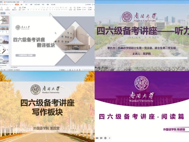 南开新闻网讯(通讯员 林宇 葛慧俊 周文钰)为助力南开学子高效复习、高分通过3月12日即将到来的四六级考试,外国语学院硕士生第一党支部携手硕士生第二党支部从2022年冬季起至今,用时四个月,以语言服务为依托,整合外国语学院硕士生现有人才资源,搭建“尽外语之才,铸帮扶之力”大网络,采取线上线下相结合的方式,形成了以语言服务为核心的帮扶大平台,为莘莘学子带来专业性强、针对性强的系统化四六级备考辅导。 自2022年11月起,外国语学院硕士生第一、二党支部创新传统辅导模式,为广大学子精心准备了“四大帮扶礼包”:各题型系列讲座、导师全程陪伴、随时在线答疑、重难点每日陪伴。七位四六级高分党员为备考学子提供了四六级听力、阅读、写作、翻译四大板块的经验技巧分享讲座,累计时长约200分钟,观看人数达500余人次。此外,支部还为有需求的学生配备了“1对1”全程辅导答疑导师,并利用NK外院平台推出“每日陪伴”专栏服务,帮助考生利用碎片时间高效巩固语言知识。