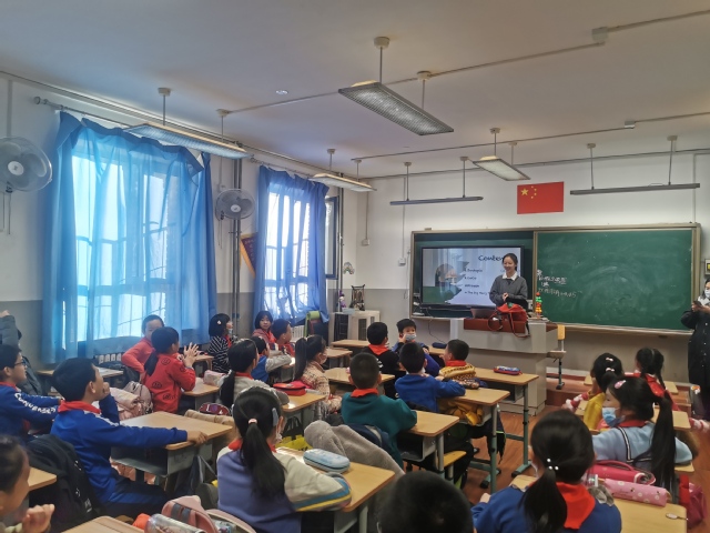 “妙‘语’中国——互动性、项目制公益英语课堂教学”是由外国语学院发起的一项以“双减”为背景、支持课后服务落地的语言类公益项目。服务团队每周前往合作中小学开展一次趣味英语课程,用外语讲述的中国故事作为教材,通过讲述、互动和指导制作桌游、手工、微电影等丰富的形式,帮助中小学生在英语课堂上理解与传承中华文化,承担文化传播者的使命。
