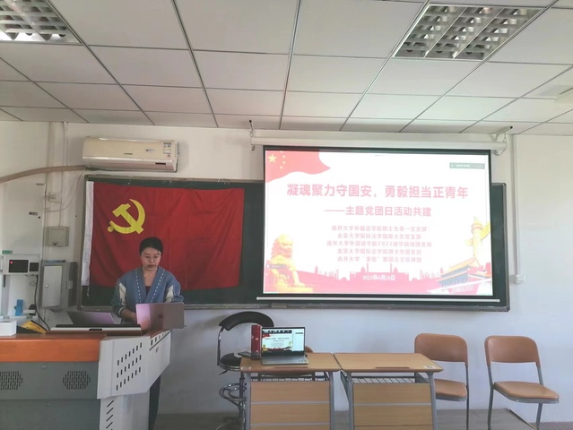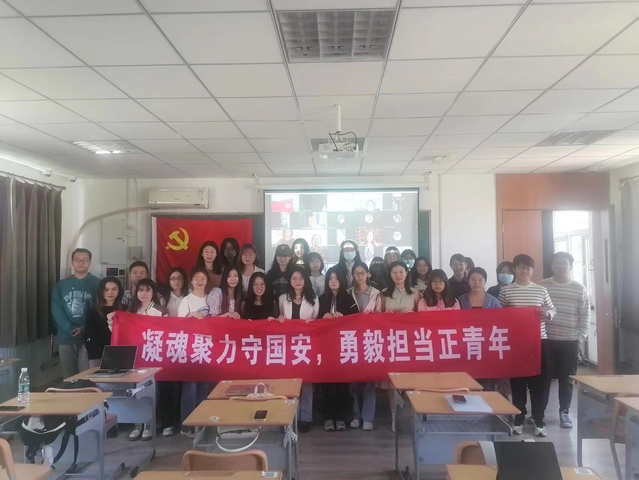 为树牢总体国家安全观,增强党员、团员国家安全意识、风险意识, 4月16日,外国语学院硕士生第一党支部、外国语学院2022级学硕班团支部与北京大学2022级国际法学院第一党支部、北京大学国际法学院2022级硕士1班、2班团支部、南开大学“豪密”爱国主义宣讲团开展了主题为“凝魂聚力守国安,勇毅担当正青年”的党团日共建活动,内容涵盖网络安全、文化安全、社会安全和国土安全等方面,共计百余人参加。