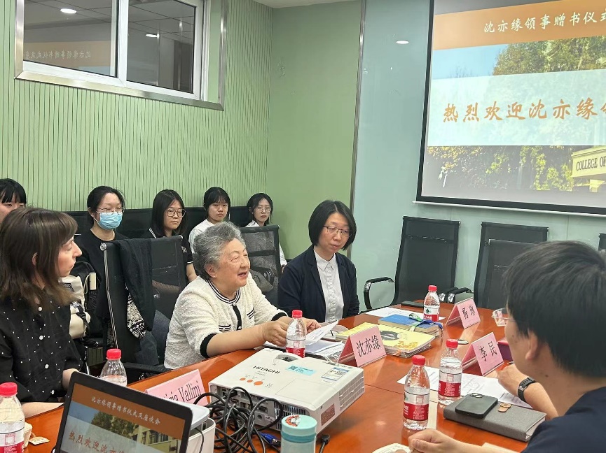 (通讯员 吴诗敏 杨琳)2023年5月24日下午,陈宝顺总领事与沈亦缘领事赠书仪式及座谈会在南开大学外国语学院举行。赠书仪式由外国语学院副院长李民教授主持。意大利语系主任杨琳副教授、倪杨老师、阮玉凤老师、乐小悦(Letizia Vallini)老师、教科办梁嵩老师和部分学生参加了此次活动。