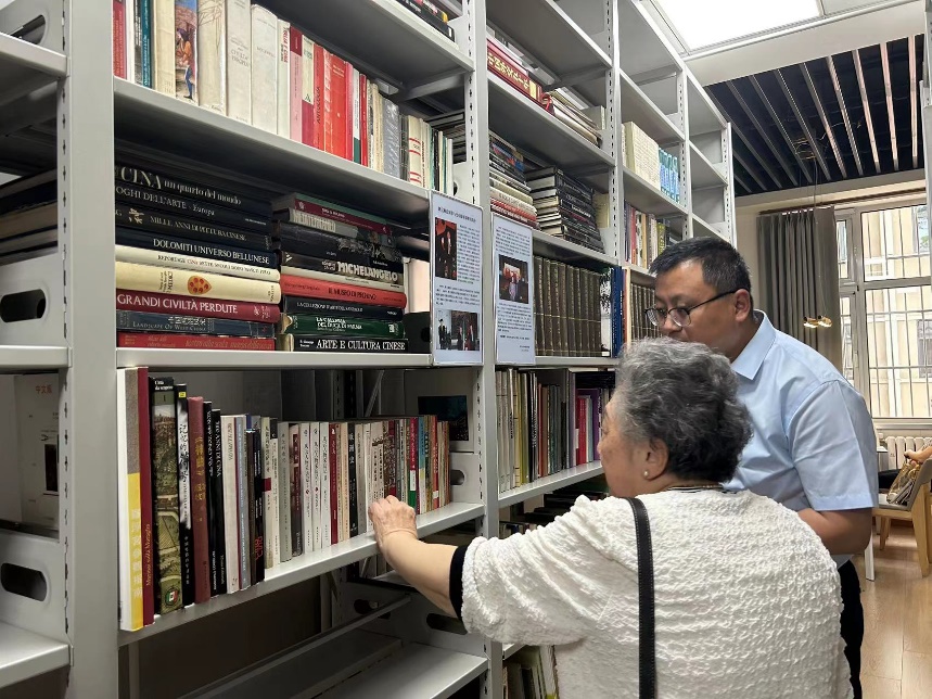 最后,沈亦缘女士在李民教授、杨琳副教授等意大利语系教师的陪同下参观了外国语学院学术资源中心和赠书专架。此次赠书仪式和座谈会让同学们有机会同中意关系发展的见证者、建设者面对面交流。聆听着沈亦缘女士述说往事,同学们受益匪浅、心潮澎湃、感慨良多,也对作为外语人所肩负的使命有了更深刻的体会和认识。