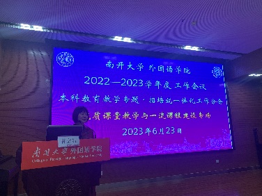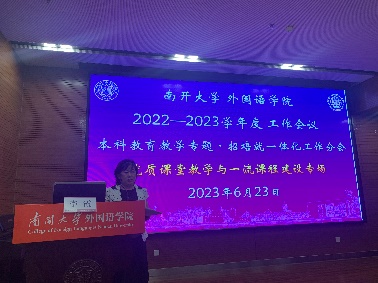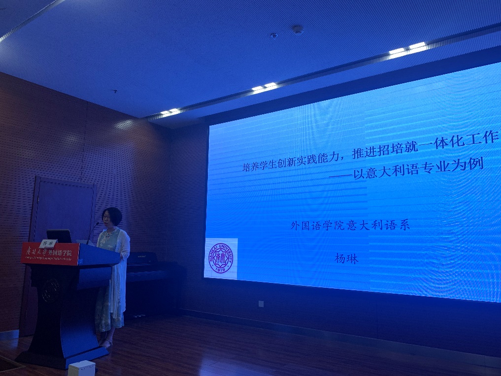 在本科生招培就一体化工作推进专场,意大利语专业主任杨琳就学生的创新与实践能力培养做了报告,分享了意大利语专业在班导师、实习基地等十余项方面的工作情况。外国语学院副院长王凯进行了2023年外国语言文学类招生咨询培训,号召全院投入到招生工作中去,为百年南开再聚英才。