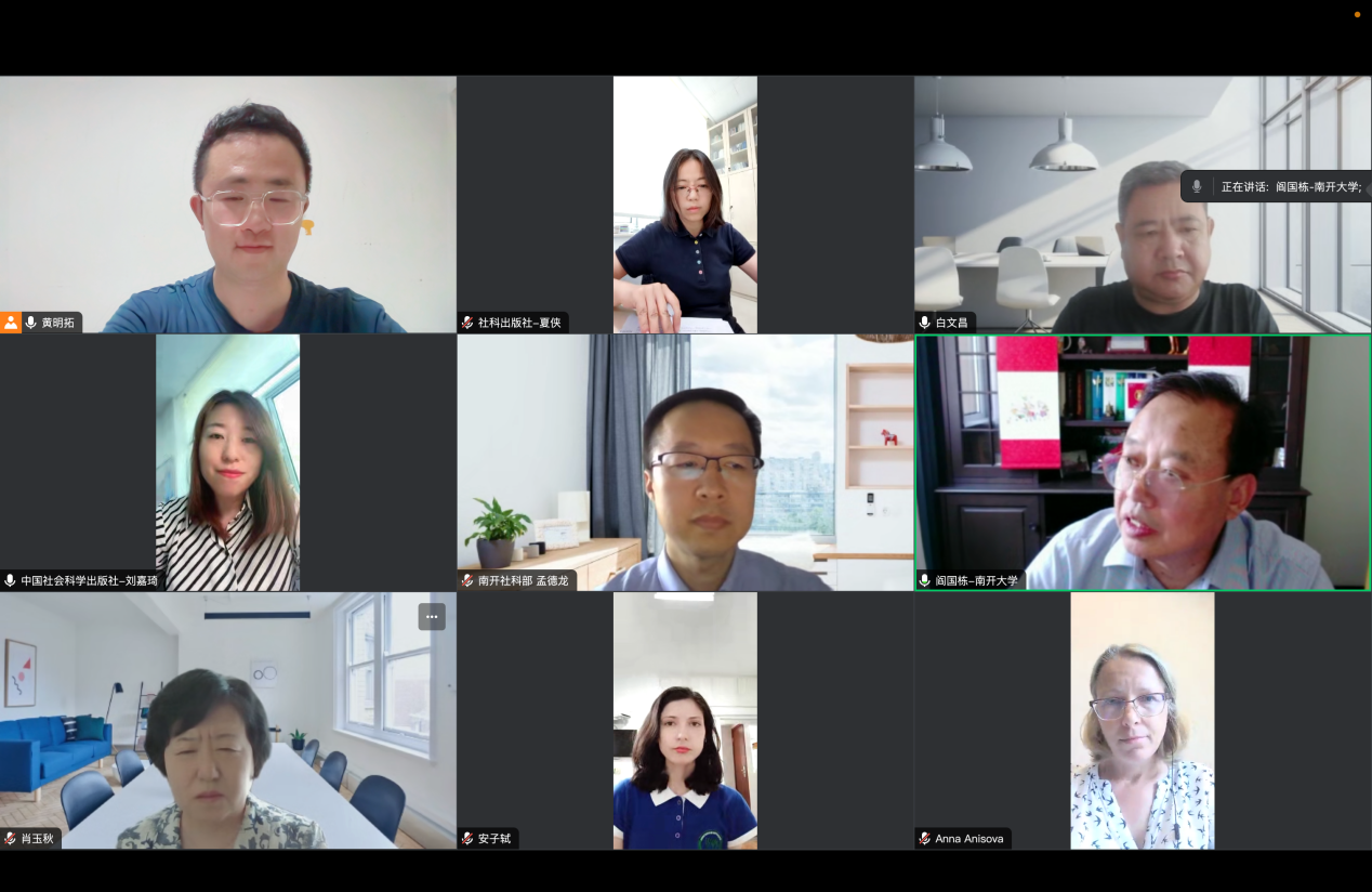 开题报告会由南开大学外国语学院院长阎国栋教授主持。南开大学人文社会科学研究部副部长孟德龙、中国社会科学出版社国际合作与出版部主任夏侠、中国社会科学出版社编辑刘嘉琦出席报告会。南开大学历史学院教授肖玉秋、黑龙江外国语学院副校长白文昌、南开大学外国语学院副教授安娜·阿尼索娃(Anna Anisova)组成答辩委员会。项目组成员南京师范大学在读硕士安子轼(Scobioala Ana)等与会。