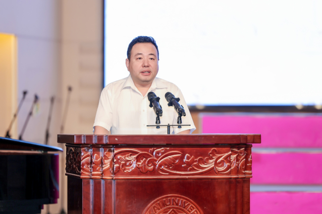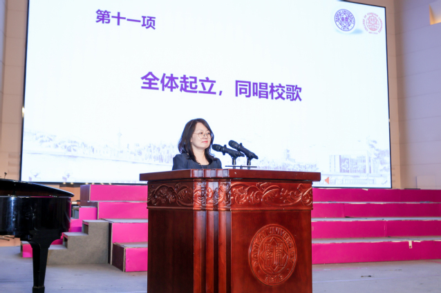 日语系韩立红老师表示大家来到南开是幸运的,祝福大家在这四年收获到知识,收获到真理,收获到亲情、友情和爱情。
