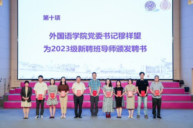 最后,外国语学院副院长王凯宣读了本科生班导师名单,由外国语学院党委书记穆祥望为2023级新聘班导师颁发聘书。