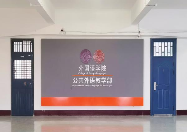 新学期伊始,公共外语教学部“新装”上线:寓意着外国语学院公共外语教学部新面貌、新气象的大幅标识牌正式亮相主楼五楼中厅;各办公室也安装了彰显学院文化特色的新门牌。