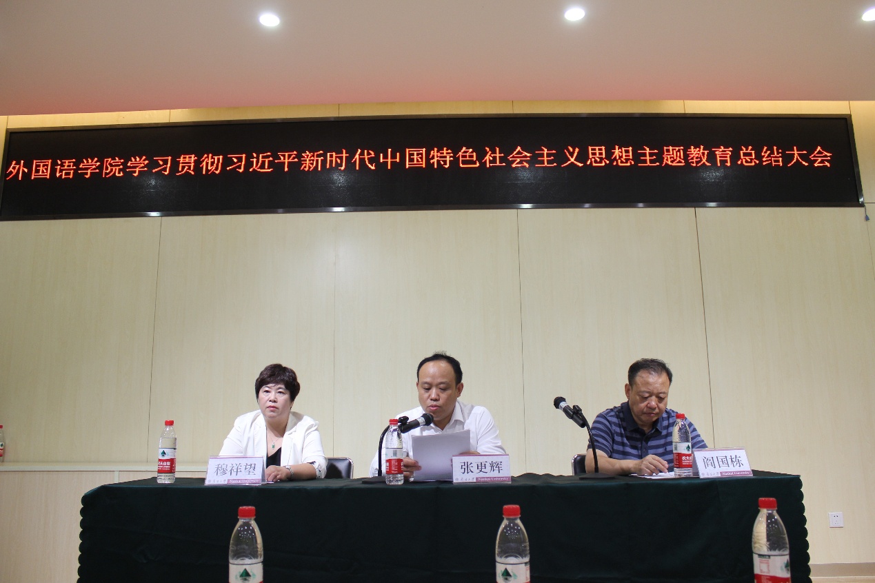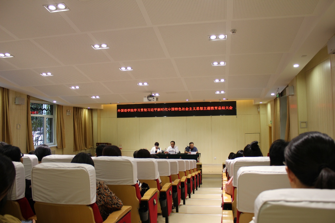 (通讯员:田静)9月19日下午,外国语学院召开学习贯彻习近平新时代中国特色社会主义思想主题教育总结会。会议由院长阎国栋教授主持,院党委书记穆祥望作主题教育总结报告,学校党委第二巡回指导组成员张更辉出席并讲话。学院领导班子成员、全体教职工党员和学生党员代表出席会议。
