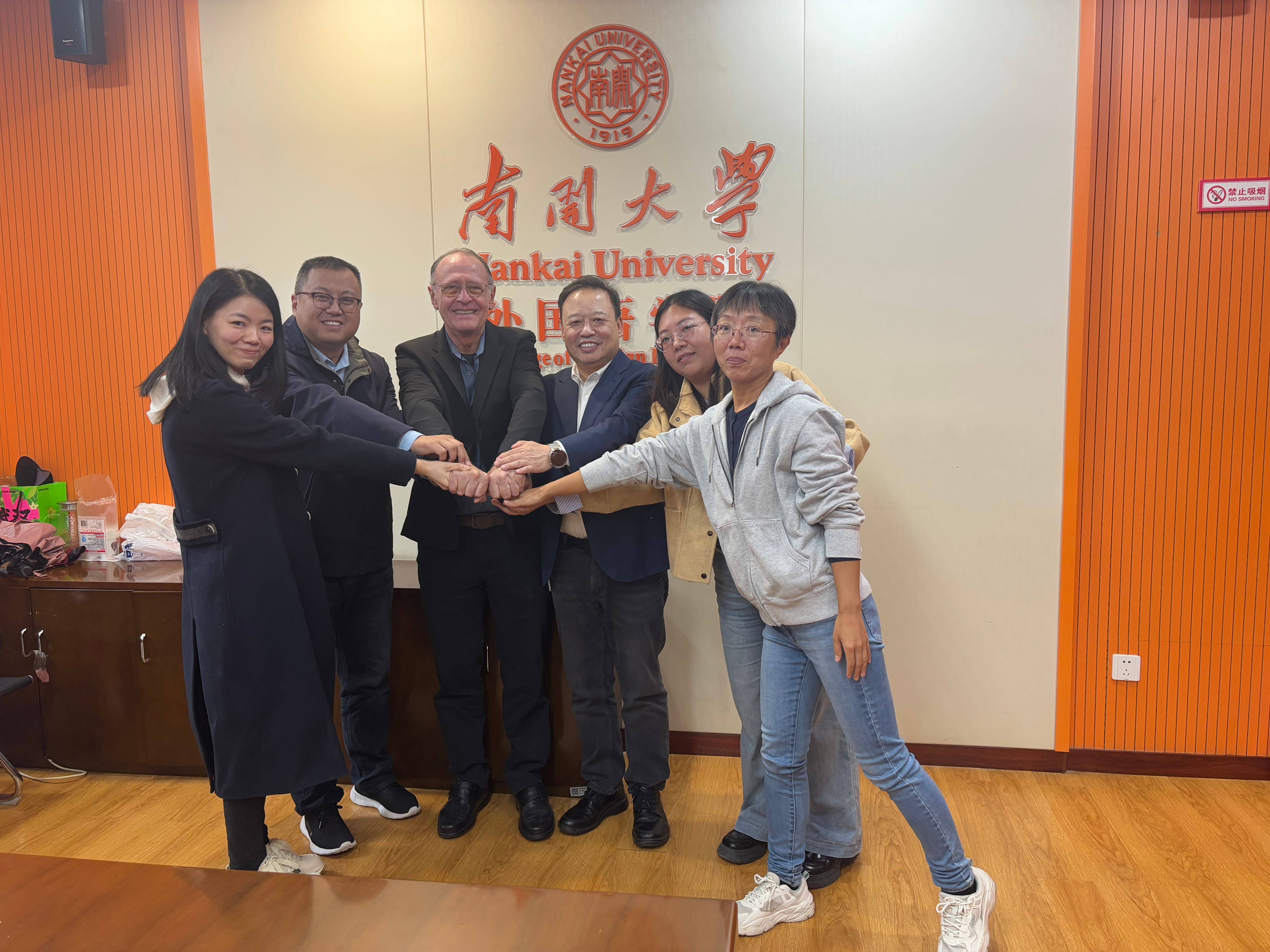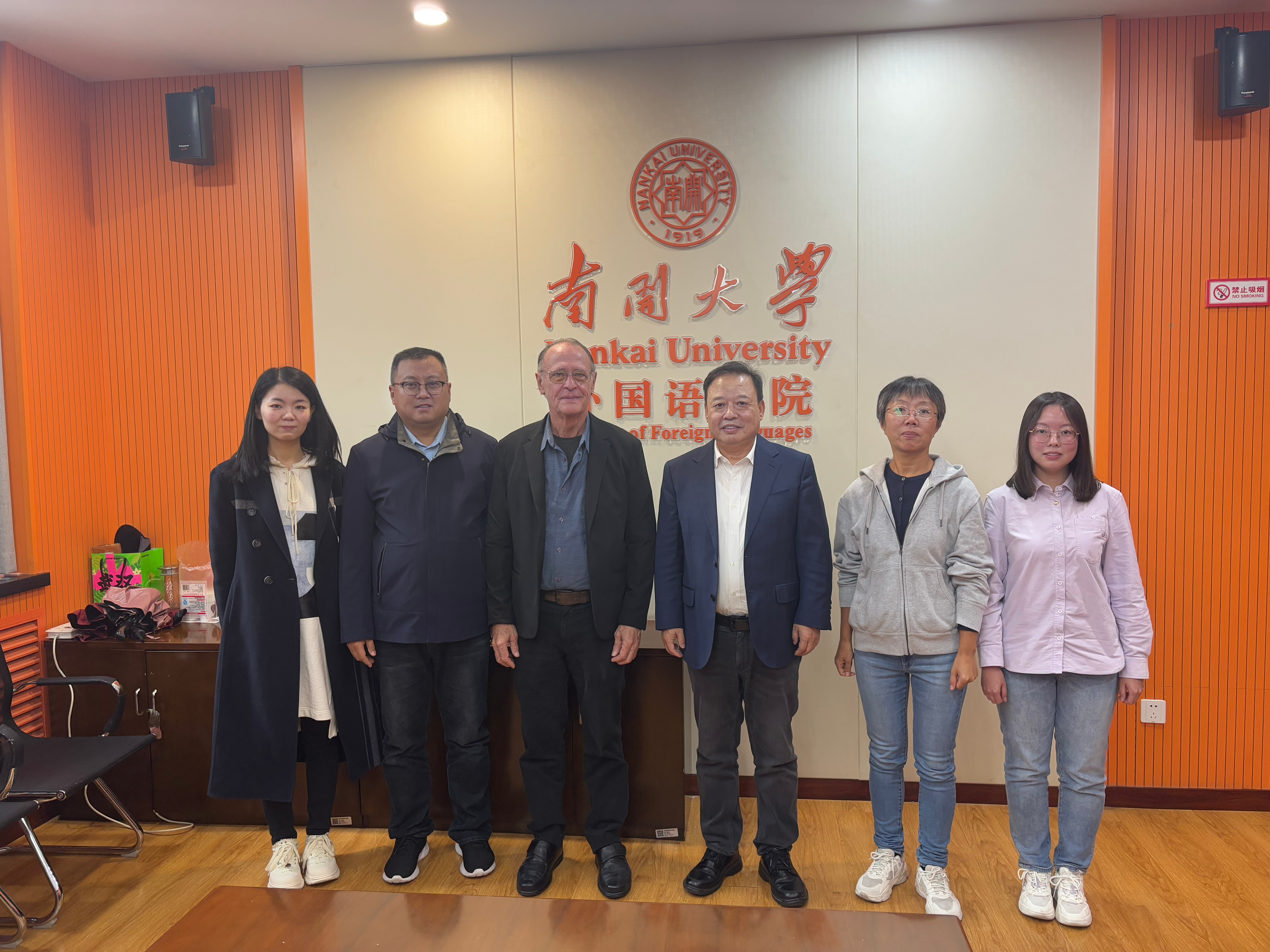 (通讯员 胡婧)2025年10月17日上午,南开大学外国语学院与巴西圣卡塔琳娜联邦大学(UFSC)举行合作会谈,双方围绕巴西研究中心建设、学术期刊创办、文化译丛出版、学术论坛举办及学生交换等多个领域达成多项共识。南开大学外国语学院院长阎国栋教授、USFC中国研究所所长劳尔(Raúl Burgos)教授、副院长李民教授、葡语专业负责人胡婧副教授、教师王程序、南开大学出版社王霆主任、徐萌出席会议。