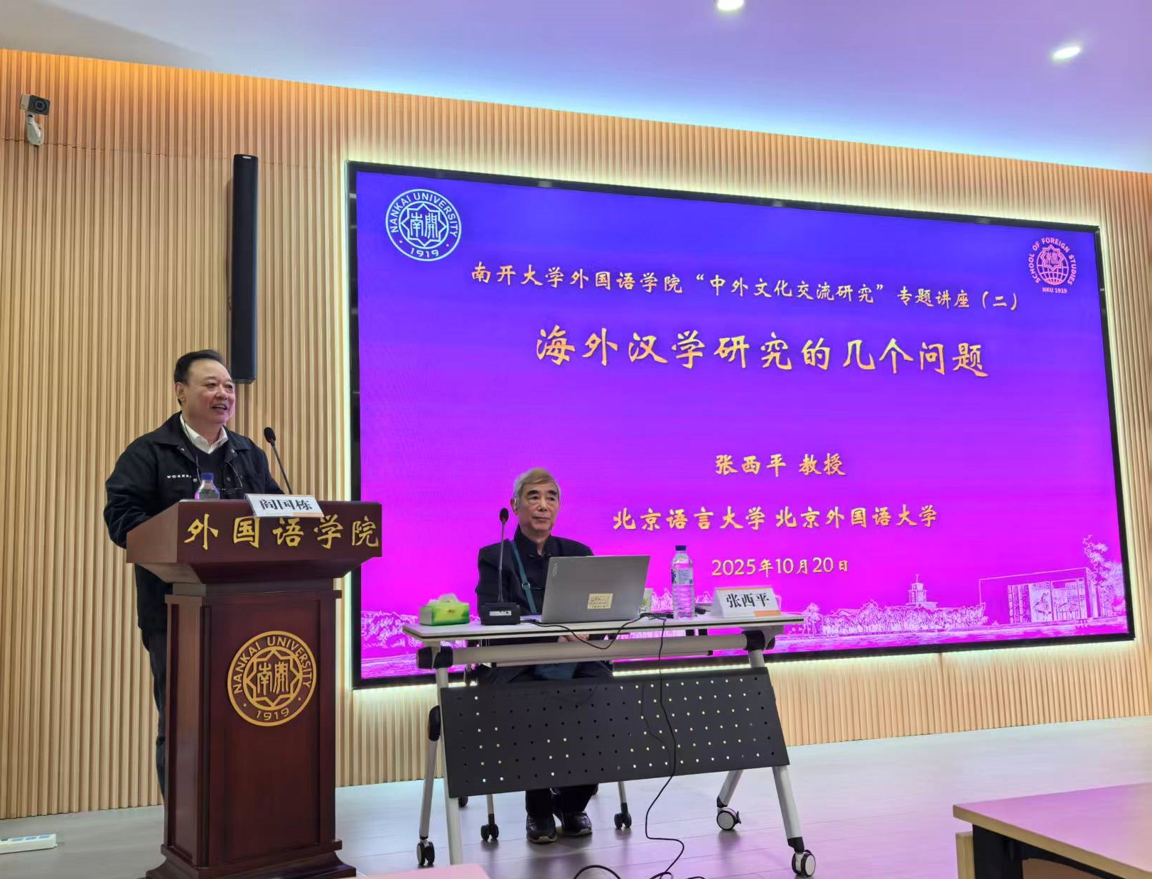 (通讯员 郭来美 杨琳;供图 杨柳 郭来美)2025年10月20日,北京语言大学特聘教授、北京外国语大学教授张西平应邀来到南开大学外国语学院作题为“海外汉学研究的几个问题”的学术讲座。该讲座是南开大学区域国别研究中心“中外文化交流研究”专题讲座的第二场。外国语学院院长、区域国别研究中心主任阎国栋教授主持讲座,外国语学院各专业师生参加讲座。