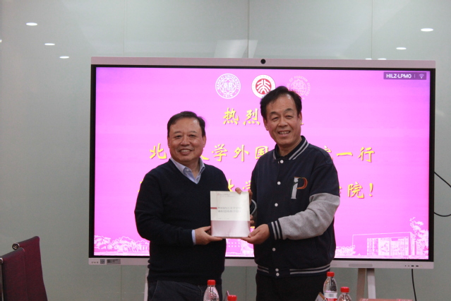 阎国栋首先对北京大学外国语学院的来访表示热烈欢迎。付志明感谢南开大学外国语学院的热情接待。双方共同回顾了两院的密切交流与合作历程。
