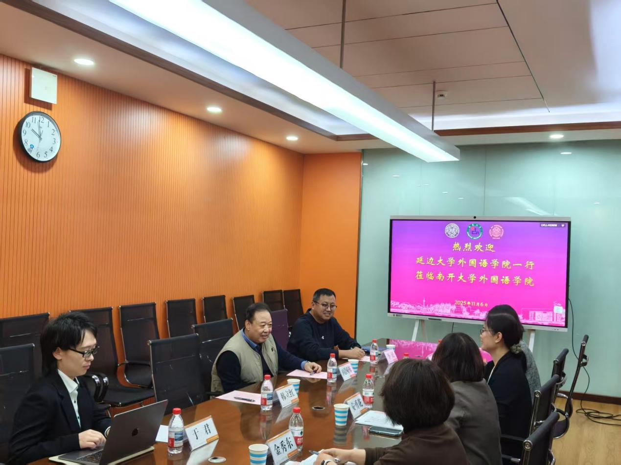 (通讯员 于君)2025年11月6日上午,延边大学外国语学院副院长姜娜、日语语言文学学科主任安勇花副教授、日语系主任金秀东副教授、日语系副主任徐瑛副教授一行四人来访南开大学外国语学院,就学科建设、本科人才培养与科研发展等内容开展调研座谈。
