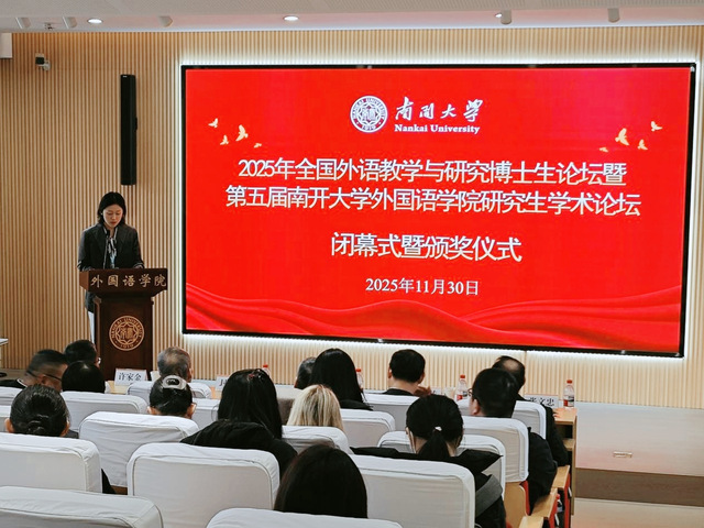 (通讯员 曲荣百 苏雅楠 蔡伊冉 田伊彤 李民)2025年11月28日至30日,2025年全国外语教学与研究博士生论坛暨第五届南开大学外国语学院研究生学术论坛在南开大学外国语学院顺利举办。为给全国各地专家学者和硕博研究生提供高效的学术交流渠道,论坛今年在南开园线下召开。