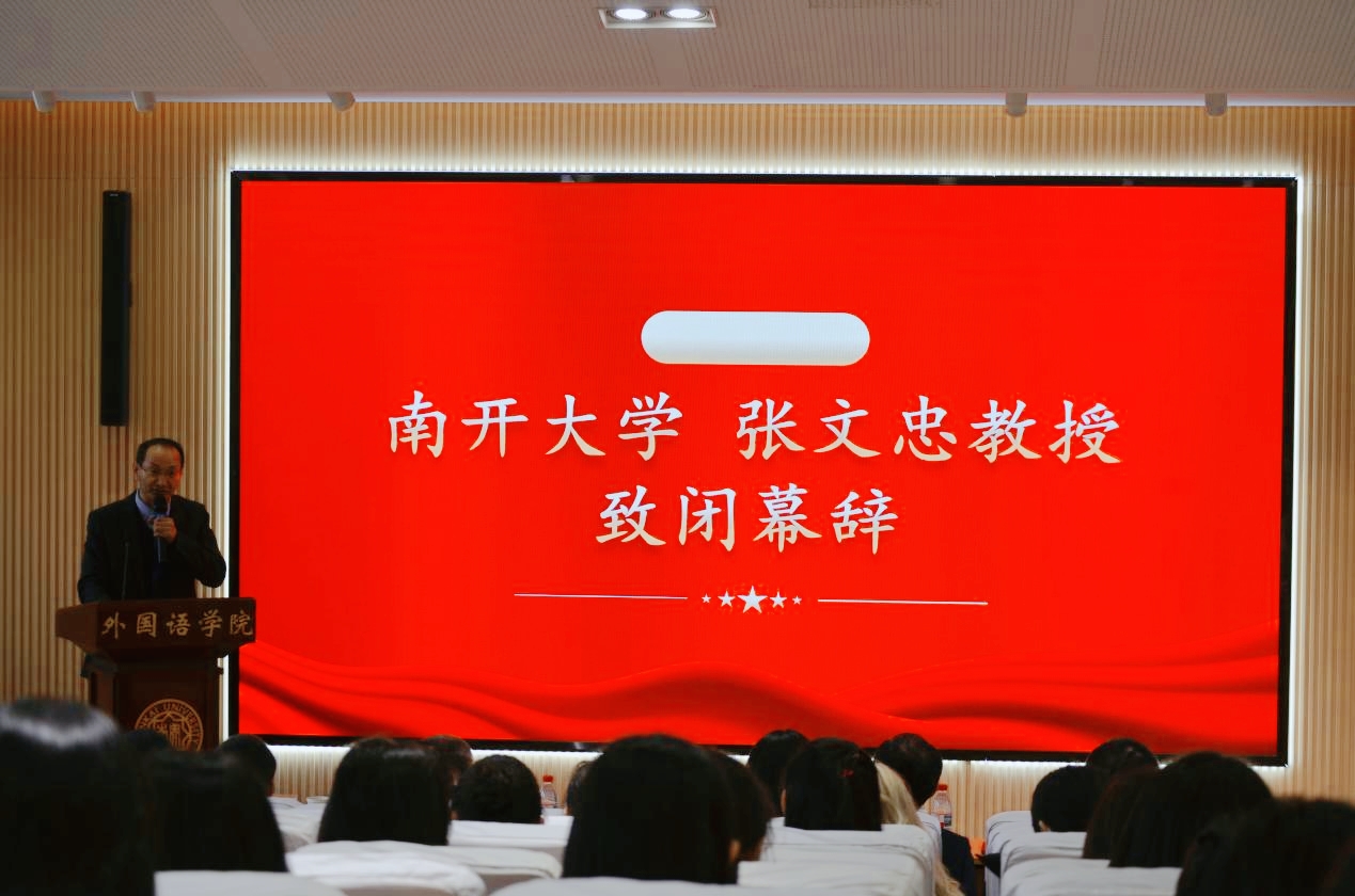 随后,南开大学张文忠教授致闭幕辞,他向所有参会博士生、莅临指导的专家学者、以及为论坛成功举办付出辛勤努力的工作人员表示了衷心感谢。他指出,本次论坛为全国外语学科的博士生搭建了一个高起点、深层次的交流平台,有效促进了学术创新思维的培养与交叉融合。他期待广大青年学人以此为契机,继续深耕学术,探索未知,并热情邀请大家未来持续关注并参与南开大学外国语学院的研究生学术活动。