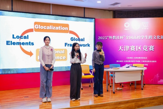 在“外教社杯”全国高校学生跨文化能力大赛中,我校4个团队通过跨文化案例分析展演、跨文化名言解读以及“讲中国故事”等多环节比拼,荣获全国三等奖1项、天津赛区一等奖2项和三等奖2项。