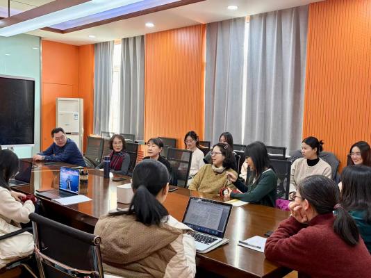 意大利语系彭倩副教授、公共英语教学部蔡晓慧副教授、西班牙语系梁嘉艺博士、法语系程毓凝博士、西班牙语系郭娟娟博士展示了项目论证书初稿,并与参会教师展开热烈交流。